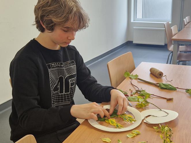 Leśne rękodzieło – obraz malowany liśćmi drzew